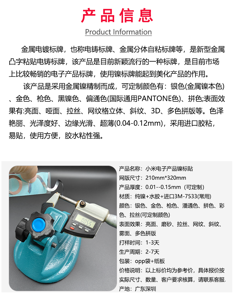 長(zhǎng)度:40mm 寬度:5mm 厚度:0.06mm 工藝:電鑄 表面效果:亮銀