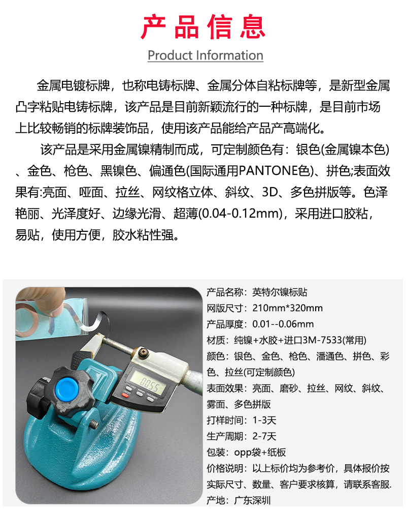 35mm 寬度:15mm 厚度:0.06mm 工藝: 電鑄 表面效果:磨砂