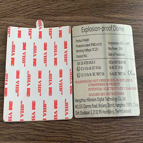 這個是不銹鋼銘牌,主要粘貼在機(jī)械設(shè)備上面,背膠使用超強(qiáng)粘力的3MVHB膠,不用擔(dān)心粘貼不牢固的問題,再加上不銹鋼蝕刻工藝,耐腐蝕好,不易褪色。