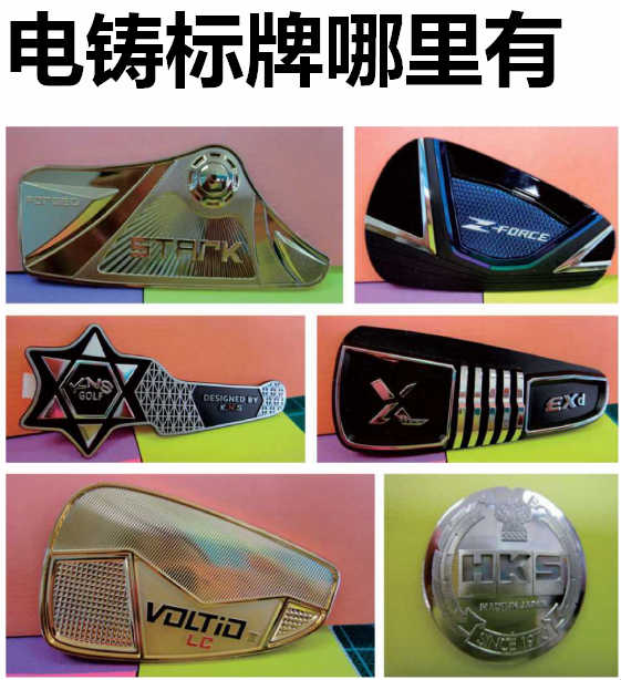電鑄標(biāo)牌是采用電化學(xué)的方法,在制有掩膜圖文的導(dǎo)體胎膜上快速 沉積金屬,構(gòu)成金屬的圖文薄片,將金屬薄片從胎膜上分離后,覆以不 干膠作為黏結(jié)層,即制成電鑄標(biāo)牌。電鑄標(biāo)配廣泛應(yīng)用于適用于各種家用電器,電腦顯示器,鼠標(biāo),音響,家具,防盜門,玻璃制品,手機(jī)塑料殼,手機(jī)PU套,不銹鋼杯,皮帶口,手機(jī),摩托車,禮品盒,鐵件,鋼琴,吉他,酒盒等工藝品上。